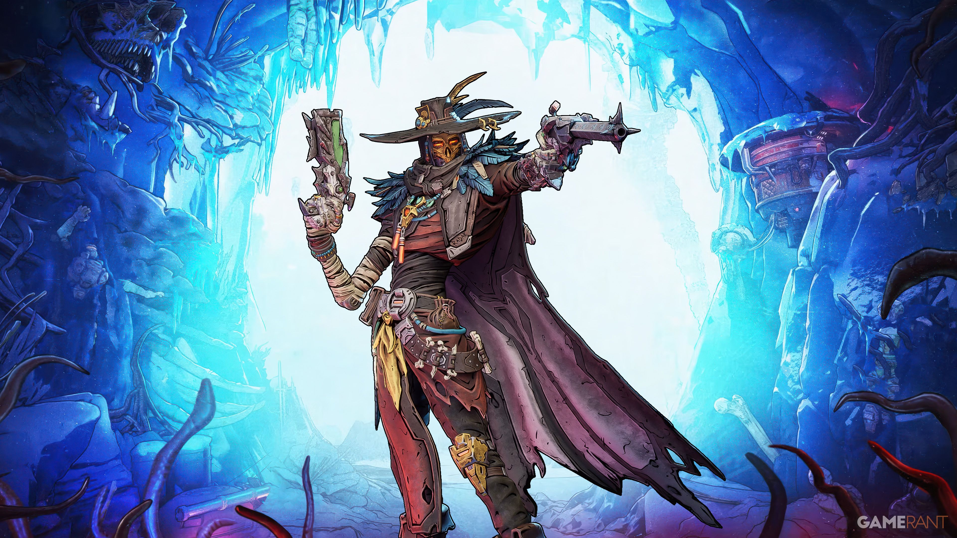Tierras fronterizas 4El primer DLC Story Pack se centra en las nuevas misiones de la historia principal de Mad Ellie y la Bóveda de los Condenados. Esta historia de DLC ve el regreso del favorito de los fanáticos. Tierras fronterizas Ellie mientras busca acabar con una nueva amenaza cósmica para Kairos ubicada en The Whispering Glacier. Fanáticos de Tierras fronterizas 3DLC Armas, Amor y Tentáculos También estará feliz de ver regresar a Mancubus Bloodtooth, dejando su trabajo dirigiendo The Lodge en Xylourgos para ayudar a guiar al jugador en esta misión.