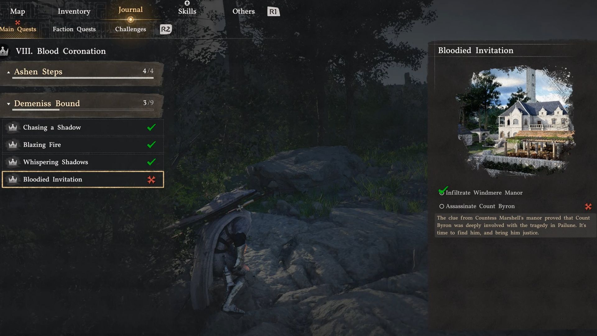 Después de infiltrarte en Windmere Manor y asesinar al Conde Byron, puedes apuntar tu linterna al centro de la habitación para aprender un nuevo recuerdo y jugarlo. Es el recuerdo de Byron Manor, donde Kliff aprende más sobre su alianza con Myurdin.