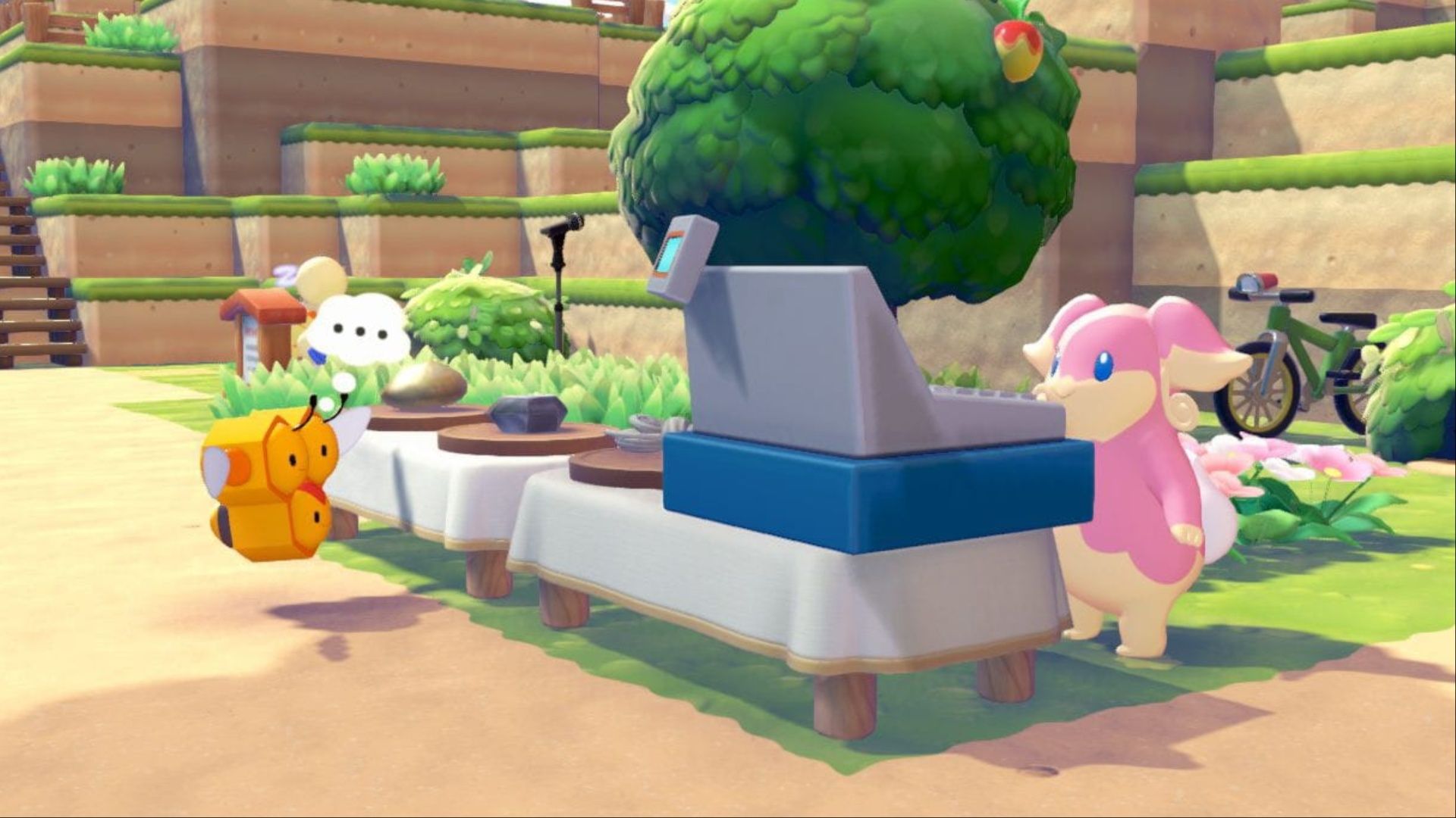 Antes de que los jugadores puedan intercambiar Pokémon en Pokopiatendrán que establecer un puesto comercial para que Pokémon pueda poner sus productos a la venta.