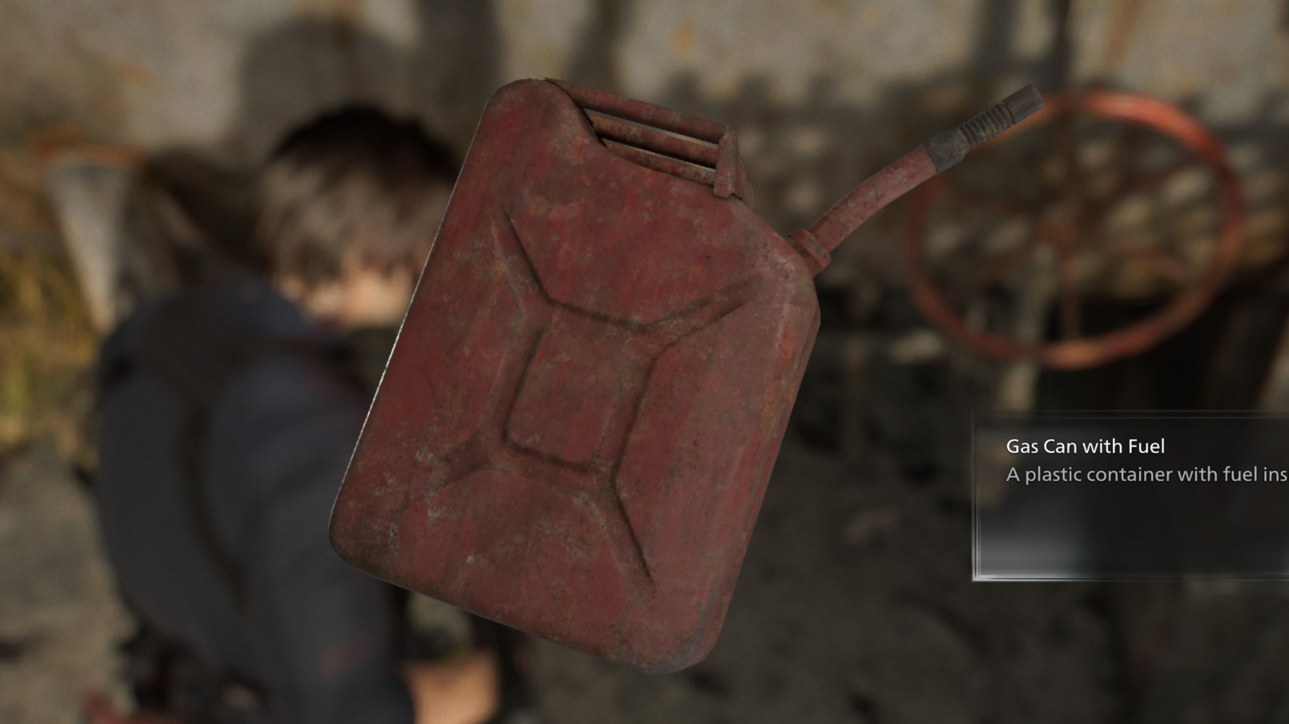 Después de que todos los zombies hayan sido asesinados, dirígete a la puerta más al norte de la gasolinera, donde encontrarás un camión cisterna de combustible y una rueda giratoria. Puedes interactuar con la rueda para girarla y luego interactuar con la boquilla para colocar la lata de gasolina. Esto te recompensará con el artículo Lata de gasolina con combustible.