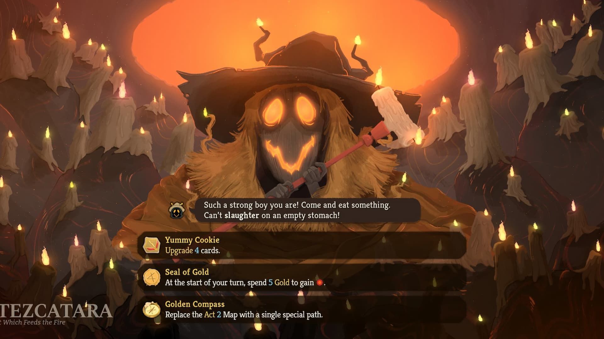 La gran ballena del juego original regresa en Mata al Spire 2, ahora con un título adecuado y arte actualizado para empezar. Ella siempre se encuentra en el primer acto y ofrece una humilde selección de reliquias que tienen como objetivo brindar a los jugadores el golpe extra que necesitan para subir a través de los primeros pisos del Spire.