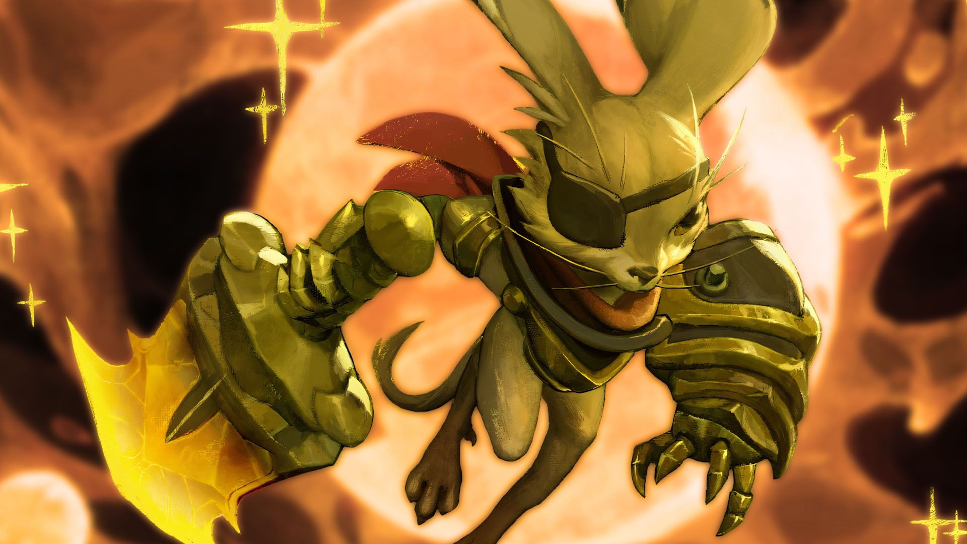 Obtiene 3 saltos, al aterrizar, ataca un área de efecto de 7 hexágonos, lo que genera 2 ataques básicos +1 por cada monstruo adyacente, lo que provoca 2 retrocesos (las unidades empujadas pueden chocar con otras unidades, causando más daño). Luego mueve 2 hexágonos.